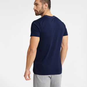Piżama męska składająca się z bluzy i długich spodni. Bluza z długim rękawem, z napisem na przodzie. Długie spodnie z troczkami do wiązania. Piżama o luźnym, komfortowym kroju, wykonana z miękkiej tkaniny.