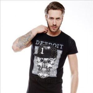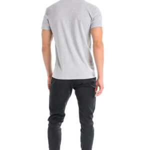 Męski t-shirt w kolorze jasno-szarym. Wykonany jest z bawełny najwyższej jakości z dodatkiem elastycznej nici lycry. Koszulka męska jest bardzo efektowna w wyglądzie, wygodna i komfortowa w użytkowaniu oraz przewiewna. Elastyczne włókno lycry sprawia, że koszulka dobrze dopasowuje się do męskiej sylwetki, nie zmienia się po praniu, nie tworzy się falbanka wokół szyi. Koszulka posiada klasyczny fason, jest gładka jednolita w kolorze, nie posiada aplikacji i nadruków. T-shirt męski posiada krótkie rękawki i jedynym zdobieniem jest delikatne logo firmy. Długością koszulka sięga do połowy pupy. Męski t-shirt sprawdza się przy tworzeniu codziennych stylizacji do pracy, w połączeniu ze spodenkami czy spodniami slim tworzy idealny i efektowny zestaw, w którym każdy mężczyzna poczuje się doskonale. Koszulka wokół szyi wykończona jest w kształcie litery V. Każdy mężczyzna powinien posiadać taką koszulkę w swojej garderobie.
