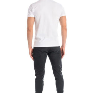 Biała męska koszulka z krótkimi rękawkami, które idealnie przylegają do rąk, eksponując męskie ramiona. T-shirt wykonany jest z wysokogatunkowej bawełny z dodatkiem włókna lycry, które jest elastyczne i dzięki temu koszulka nie rozciąga się nie zmienia fasonu natomiast idealnie dopasowuje się do męskiej sylwetki. Swoją długością sięga do połowy pośladka, jest luźna, przez co odczuwamy wygodę podczas noszenia. Na jednym z rękawów naszyte jest delikatne metalowe logo firmy. Koszulka w kolorze białym to podstawa w męskiej garderobie, bowiem pasuje do każdej stylizacji na co dzień do pracy lub na spotkania towarzyskie w gronie przyjaciół. Taki t-shirt zapewnia komfort każdemu mężczyźnie, ponieważ ciało nie poci się. Występuje również w wielu innych kolorach bazowych, dlatego każdy z Panów ma możliwość wybrania odpowiedniego t-shirtu do swoich potrzeb. To propozycja idealna dla fanów klasyki oraz prostych krojów. Nie powinno go zabraknąć w garderobie żadnego eleganckiego mężczyzny.