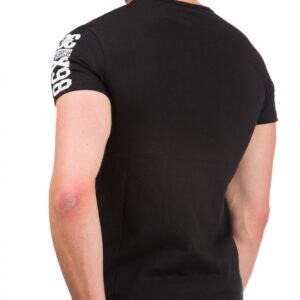 Koszulka męska z krótkim rękawkiem. Na przodzie ciekawy nadruk. Tył gładki czarny.